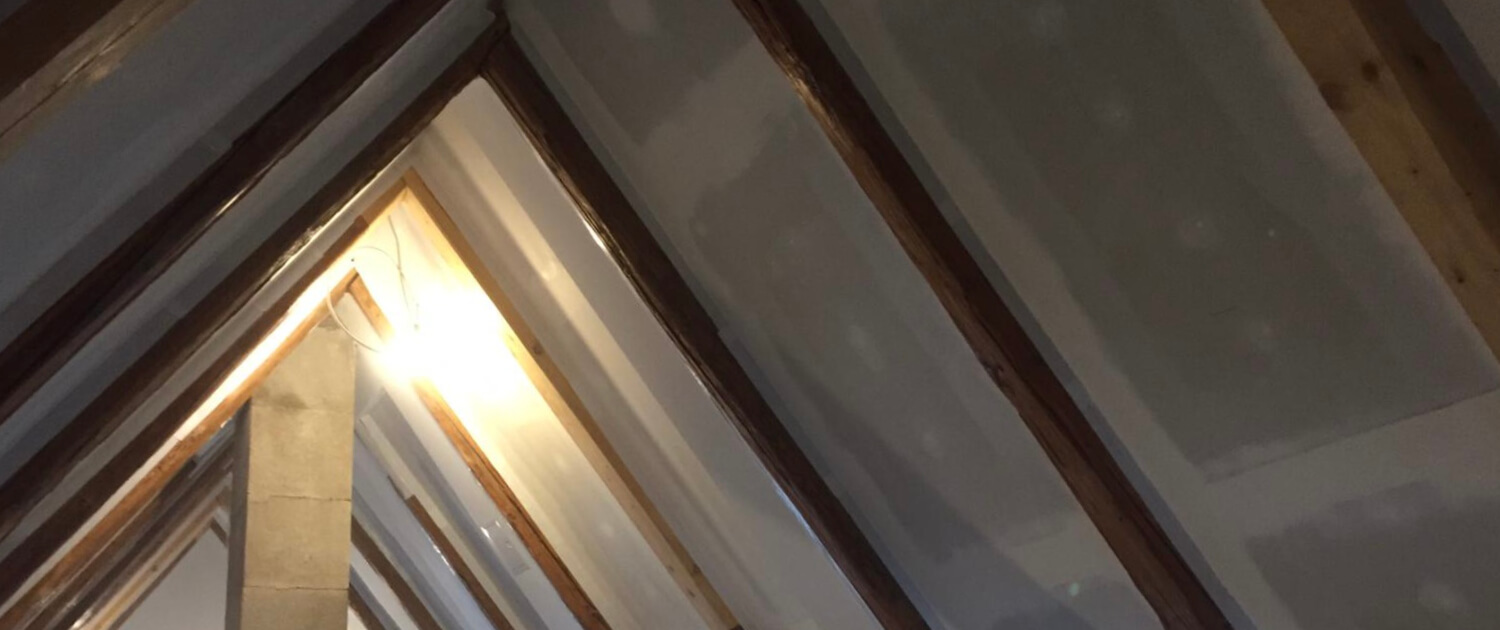 besteht aus einer abgehängten oder direkt befestigten Holz- oder Metallunterkonstruktion, die mit den entsprechenden Gipsplatten oder Akustikplatten beplankt wird. Gipsplattendecken werden unter Massivdecken, Holzbalkendecken oder Trapezblechdecken eingesetzt zur Verbesserung des Brand-/ Schall- oder Wärmeschutzes, zur Herstellung einer Installationsebene zwischen Rohdecke und Sichtdecke sowie zur Regulierung der Raumhöhe und nicht zuletzt aus gestalterischen Gründen.
